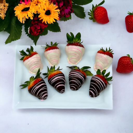 8 assorted mouth watering Chocolate dipped strawberries come as follows...